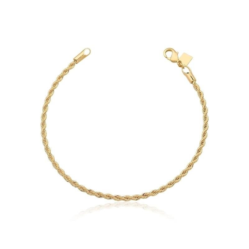 Pulseira em cordão baiano, trançada e lisa. É um estilo sofisticado e elegante que consiste em fios trabalhados que se retorcem e se assemelham a uma corda.